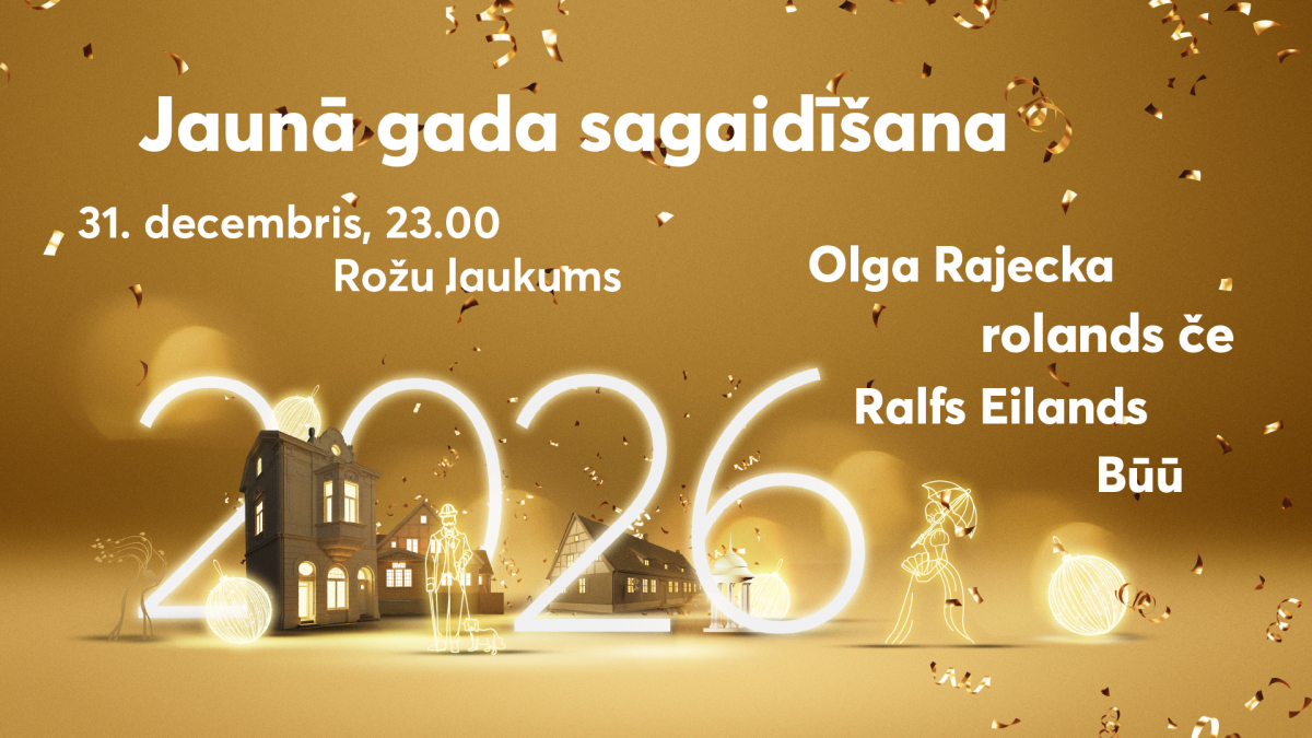 Zvaigžņota Jaunā gada sagaidīšana Rožu laukumā aicina liepājniekus un pilsētas viesus uz krāšņu muzikālo programmu. Gadu mijā uz skatuves kāps estrādes zvaigzne Olga Rajecka, viens no spilgtākajiem reperiem rolands če, harismātiskā Būū un enerģiskais Ralfs Eilands.