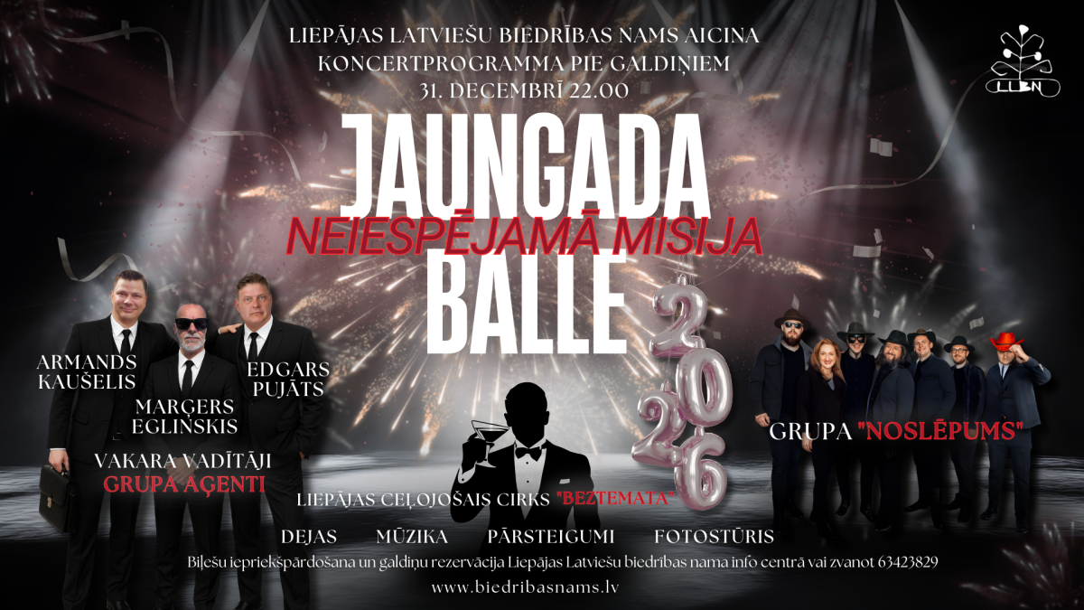 Liepājas Latviešu biedrības nams aicina uz aizraujošu Jaungada svinību balli – “NEIESPĒJAMĀ MISIJA” 31. decembrī plkst. 22.00.