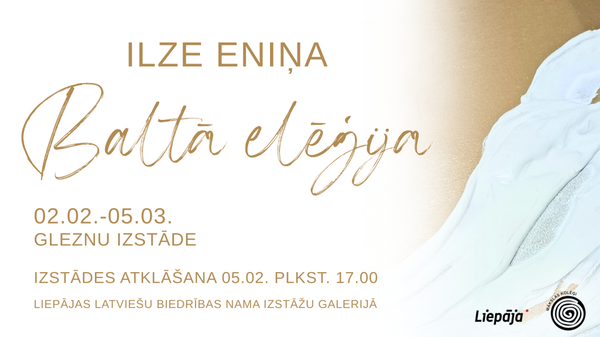 Māksliniece Ilze Eniņa aicina apmeklēt jubilejas izstādi “BALTĀ ELĒĢIJA” Liepājas Latviešu biedrības namā.