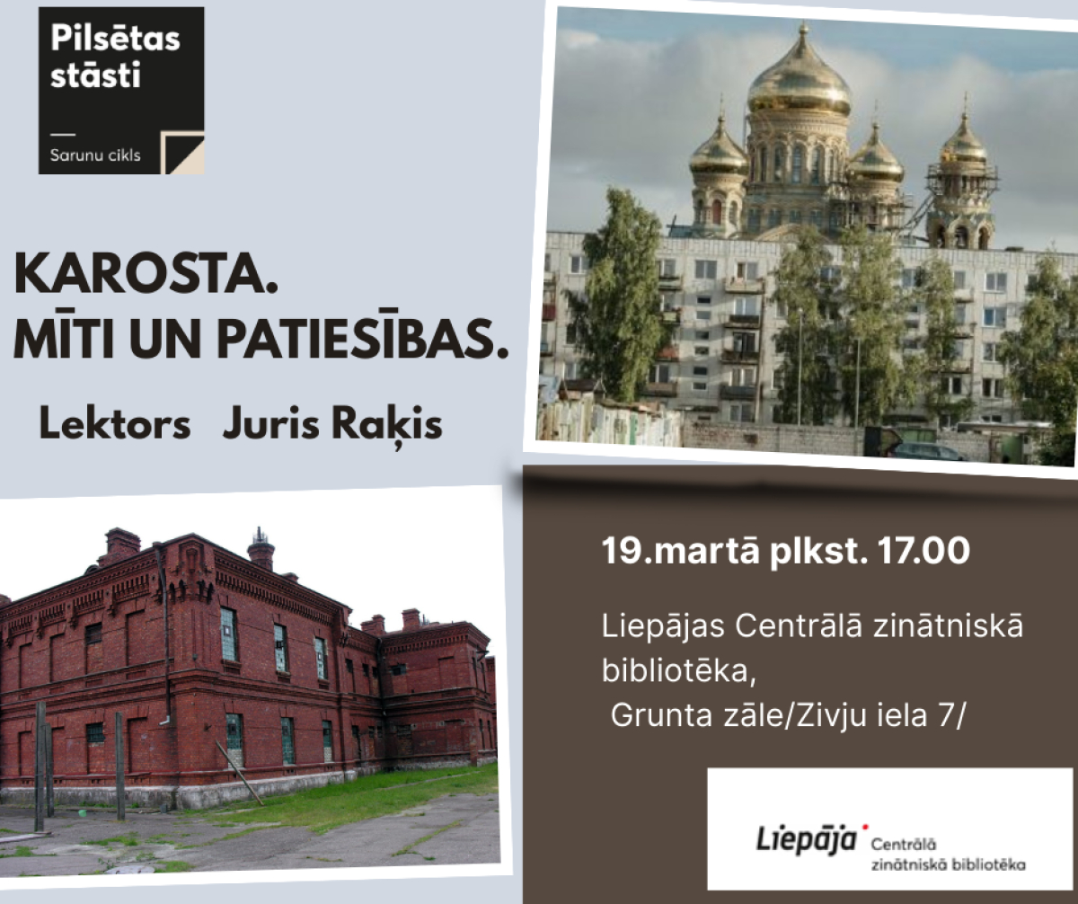 Liepājas Centrālā zinātniskā bibliotēka 2026. gada 19.martā plkst. 17.00 aicina uz vēstures pētnieka Jura Raķa stāstījumu  "KAROSTA. MĪTI UN PATIESĪBAS".