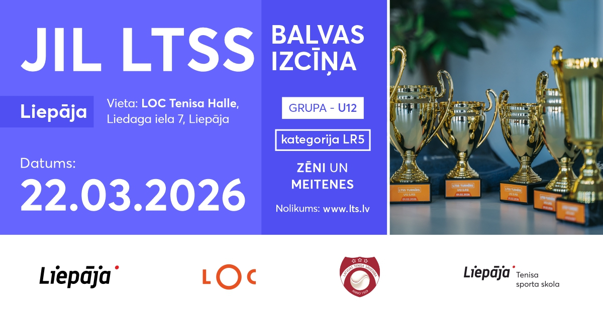 2026. gada 22. martā LOC Tenisa hallē norisināsies LR-5 kategorijas JIL LTSS balvas izcīņa U12 grupai. Vairāk informācijas: https://play.teniss.lat/tournament/9887
