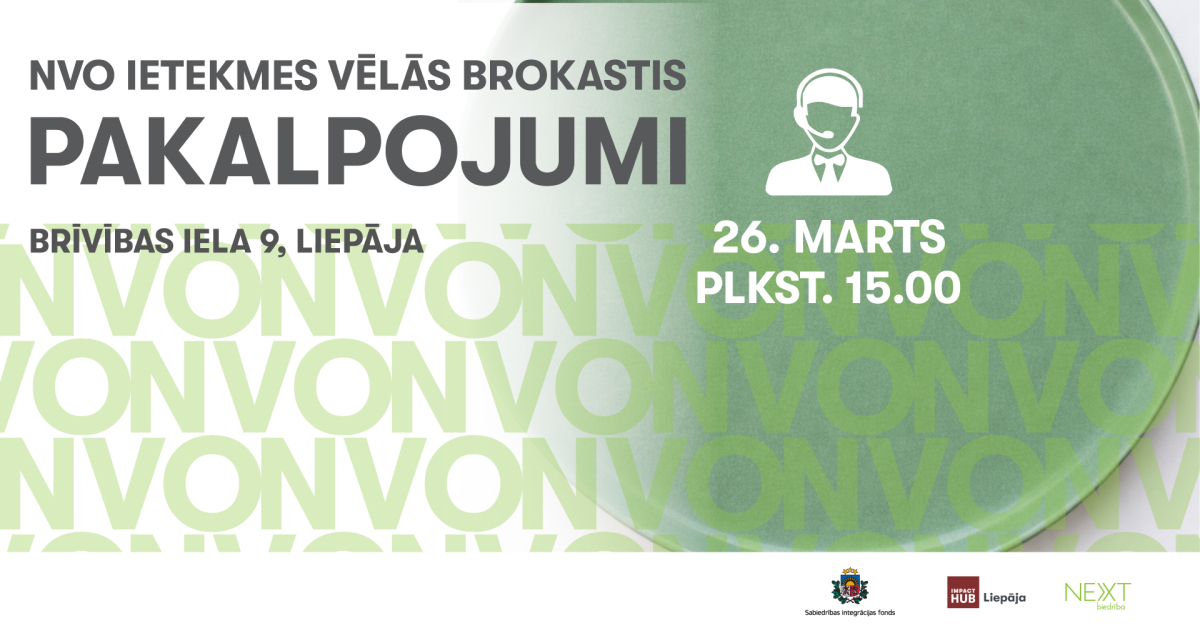 Projekts “Ceļā uz ietekmi: NVO kapacitātes stiprināšana” tiek īstenots ar Sabiedrības integrācijas fonda finansiālu atbalstu no Latvijas valsts budžeta līdzekļiem. Par NVO ietekmes “vēlo brokastu” un NVO kapacitātes stiprināšanas foruma saturu atbild biedrība “Impact Hub” sadarbībā ar biedrību “NEXT”.